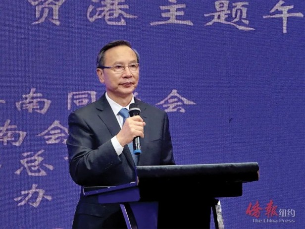 【侨报记者崔国萁2024年6月27日纽约报道】由纽约海南同乡会、纽约海南会所、美国海南总商会主办的欢迎海南省人大代表团莅临纽约暨海南自贸港主题午餐会27日在布碌仑区举行。代表团团长、海南省人大常委会副主任李军,会上热情洋溢地介绍了海南自贸港的发展、优势和优惠政策,并欢迎到海南投资兴业、工作生活,共享海南自贸港的红利。
